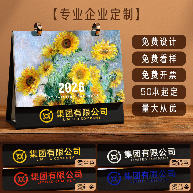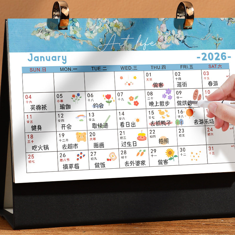 木雷 台历2026年新款油画复古中国风艺术日历计划本定制大格子记事本月历创意办公桌面摆件订制logo内页印刷
