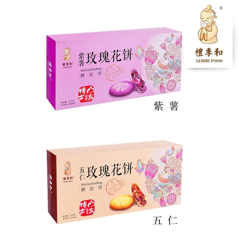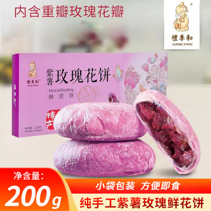 礼季和玫瑰鲜花饼紫薯酥皮传统糕点山东特产零食休闲小吃200gx2盒