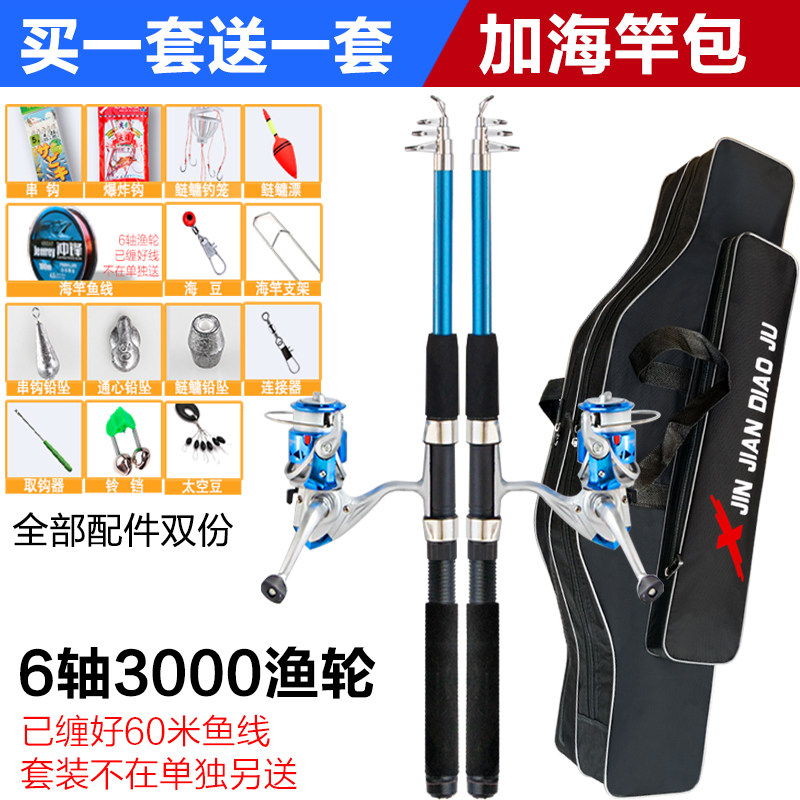 金属轮海杆套装组合全套特价抛竿超硬远投竿甩竿海钓鱼竿海竿套装