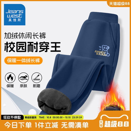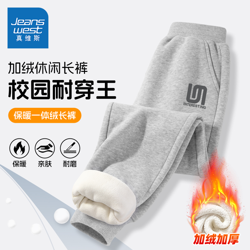 真维斯童装男童加绒裤子儿童秋冬款加厚保暖卫裤男孩时尚运动长裤