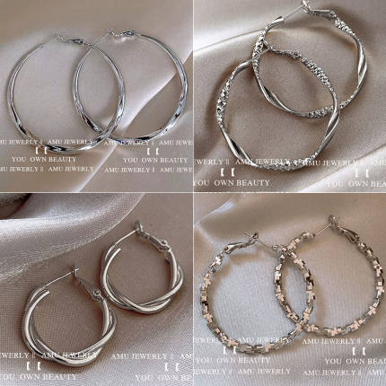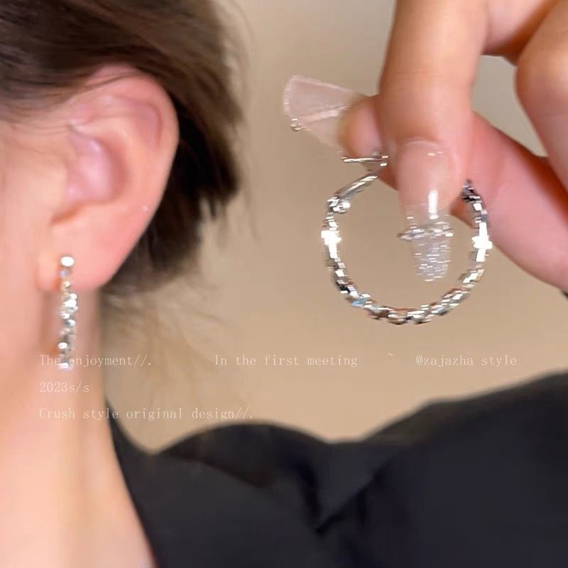 银色高级感耳环圈圈女2025年新款爆款个性耳钉小众设计感耳扣耳饰