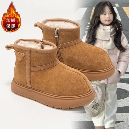 女童雪地靴2025冬季新款保暖儿童棉鞋大童鞋子加绒加厚短靴小女孩