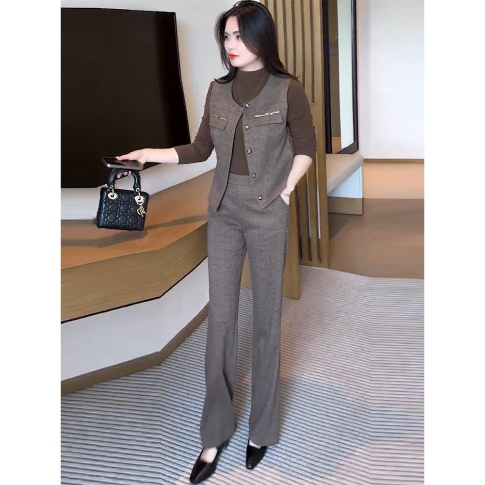 MONLOUVE时尚套装女2025秋季新款洋气显瘦马甲半高领打底衫阔腿裤