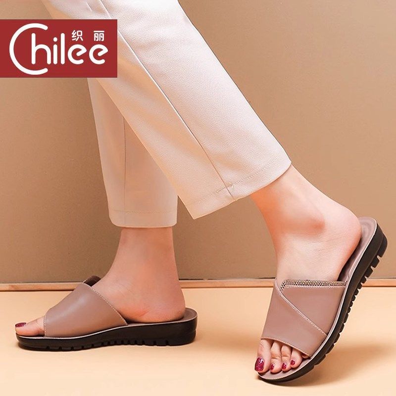 中老年妈妈防e滑拖鞋2025新款外穿凉拖平底中年凉鞋轻便鞋子女夏