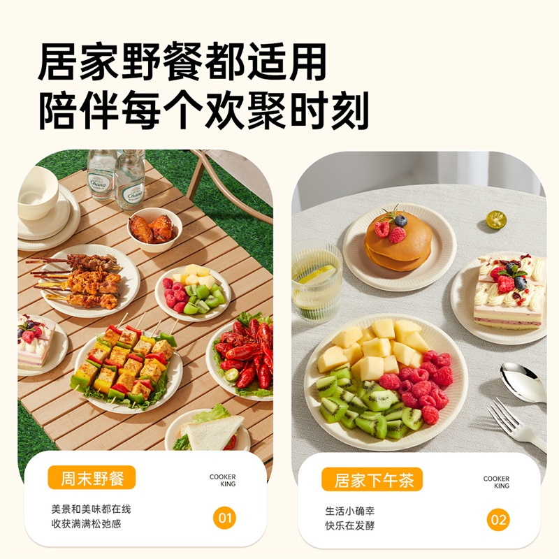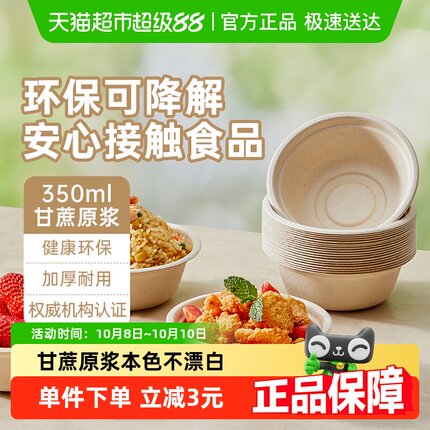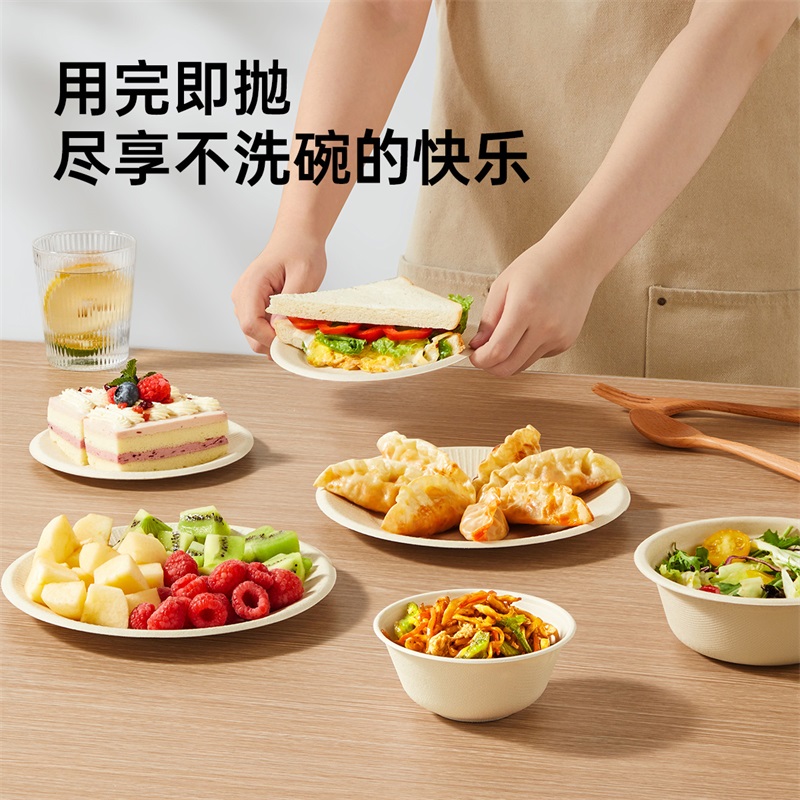 炊大皇一次性纸碗环保可降解甘蔗浆碗户外家用野餐盘汤碗烧烤火锅