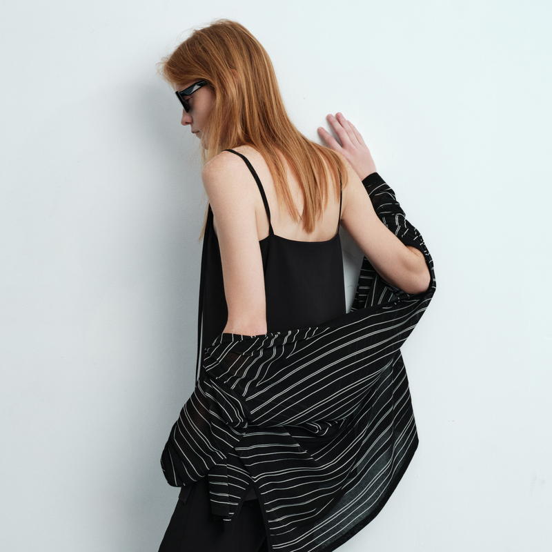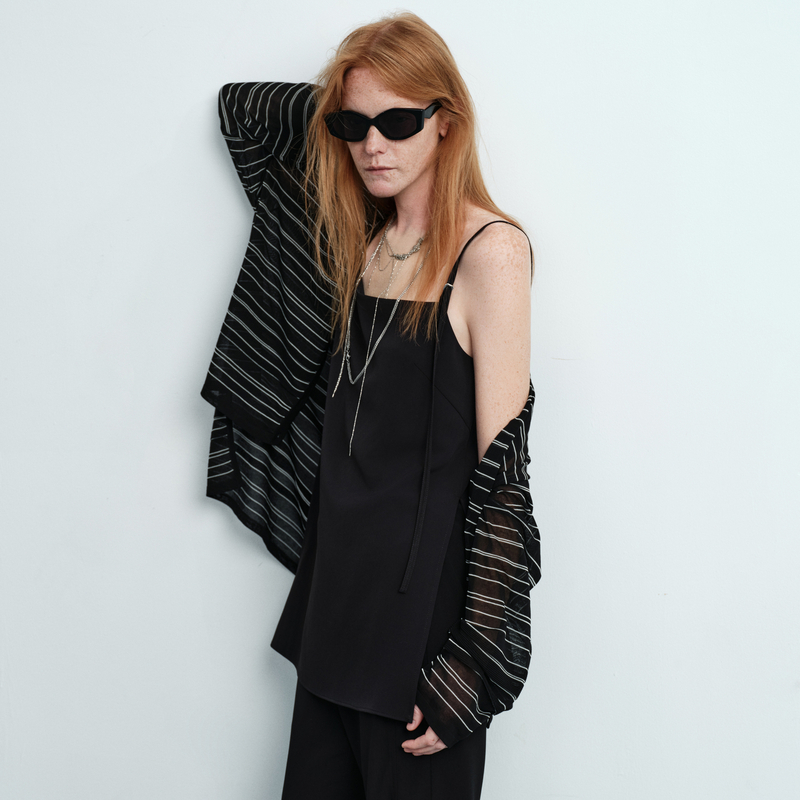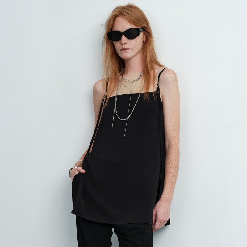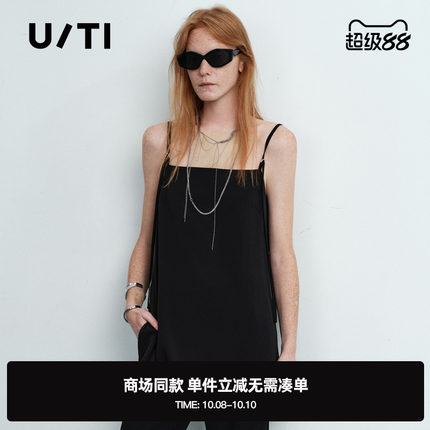 专柜新款U/TI尤缇2025夏季黑色长款吊带百搭简约背心内搭上衣女装