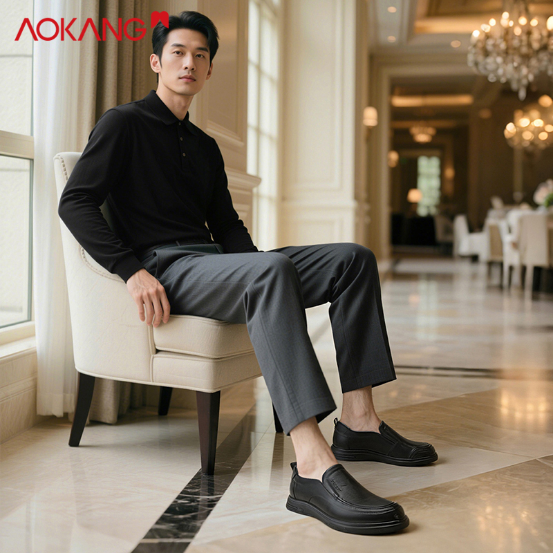 奥康正品休闲皮鞋男2025新款秋季软底套脚舒适爸爸鞋男士商务男鞋