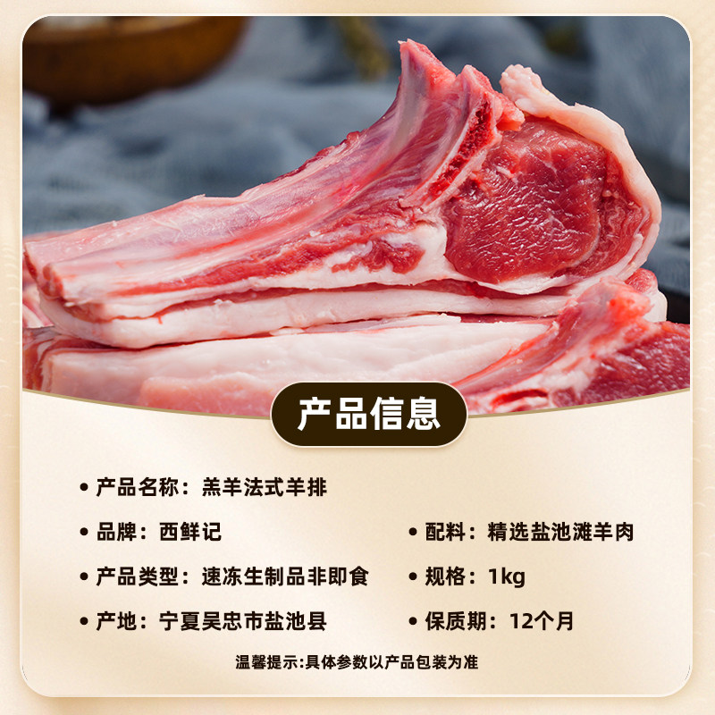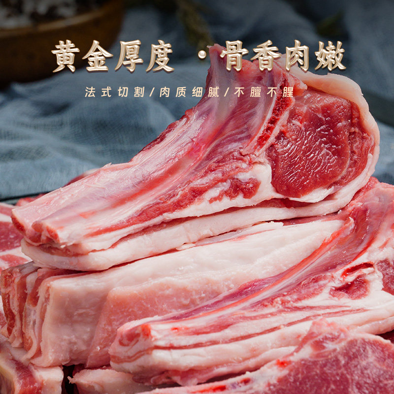 臻选 西鲜记宁夏盐池滩羊羔羊法式羊排肋排原切小羊排羔羊排1000g
