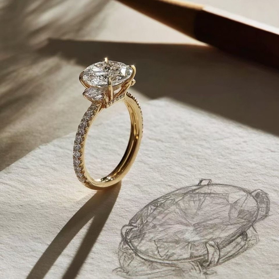 瑞和珠宝培育钻石裸钻定制18K白金大克拉粉钻黄钻戒指经典围钻款