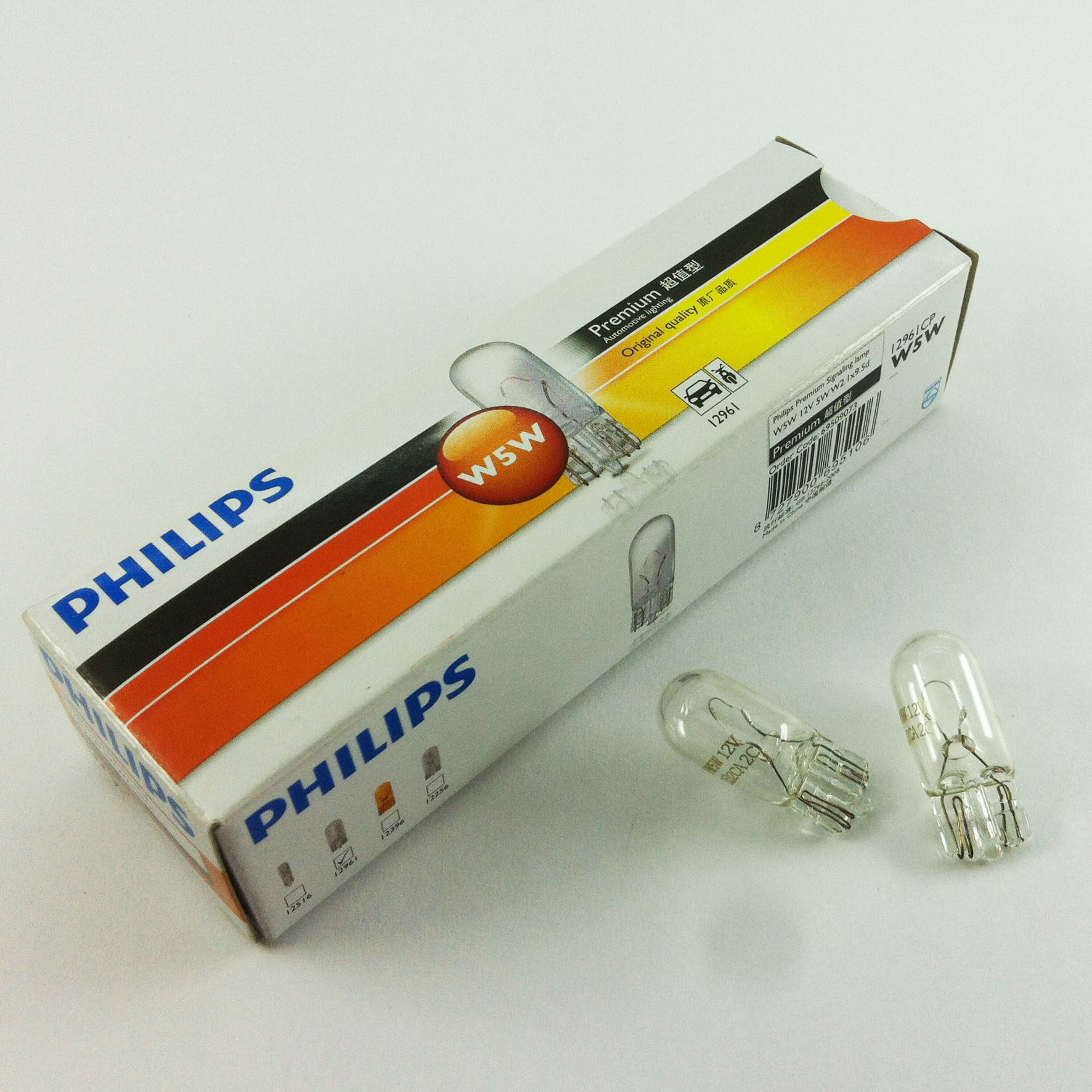 飞利浦 示宽灯汽车灯泡 T10插泡 12961 W5W 12V 室内灯牌照
