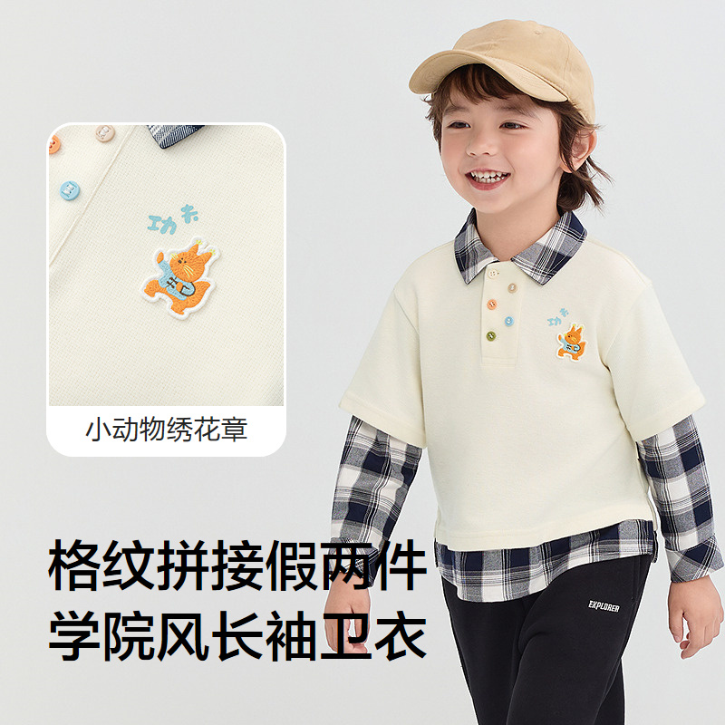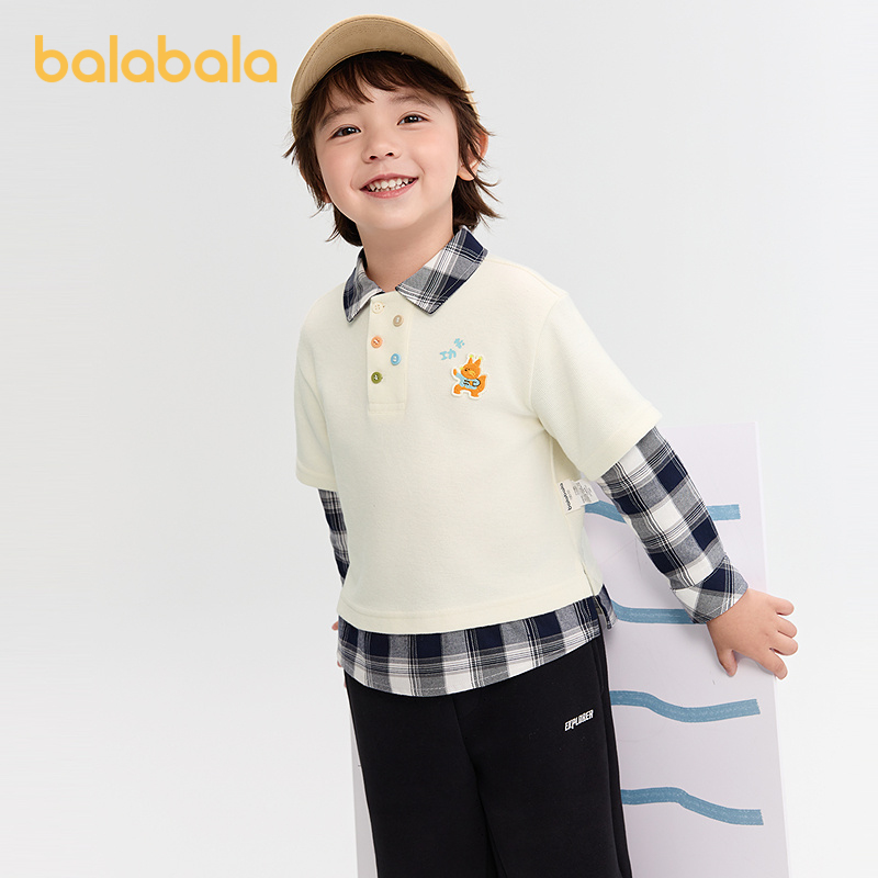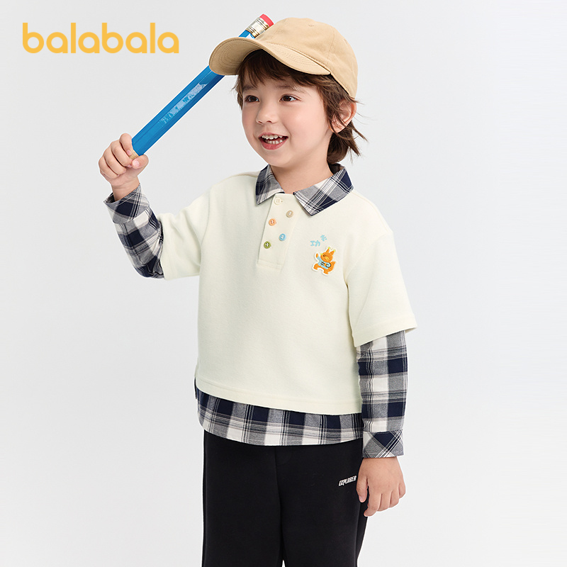 巴拉巴拉童装男童卫衣格纹拼接假两件长袖上衣2025新款秋装学院风
