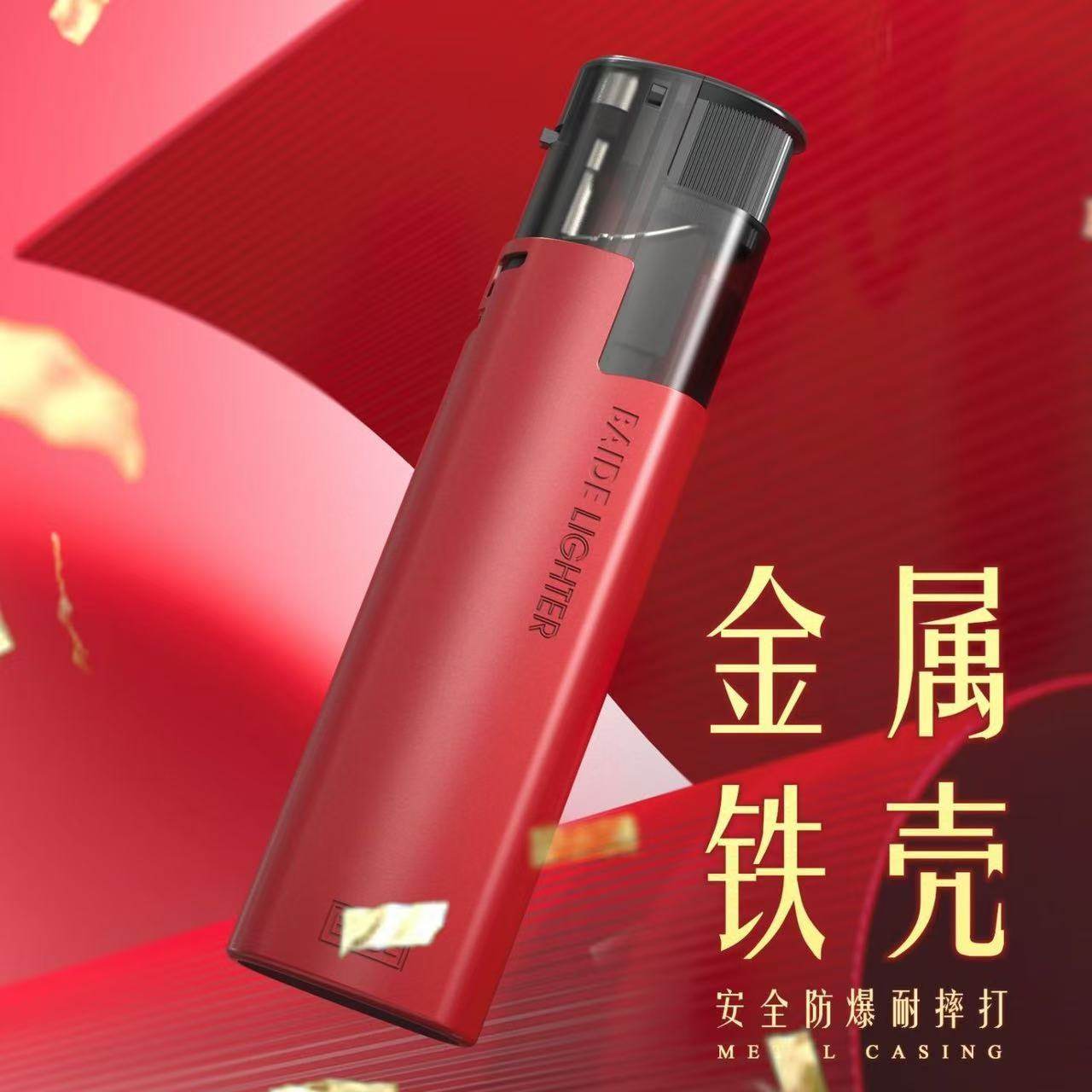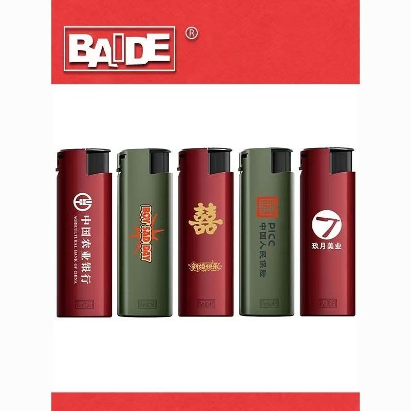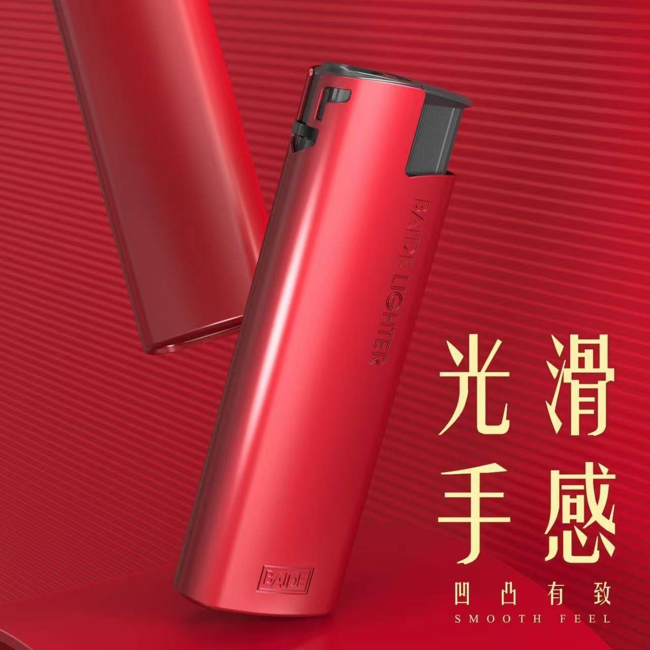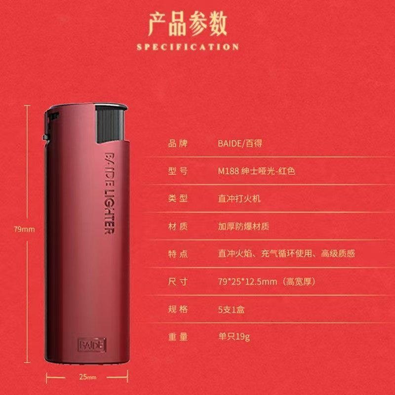 百得BAIDE红色防风直冲打火机高档金属可充气电子喜庆广告定制