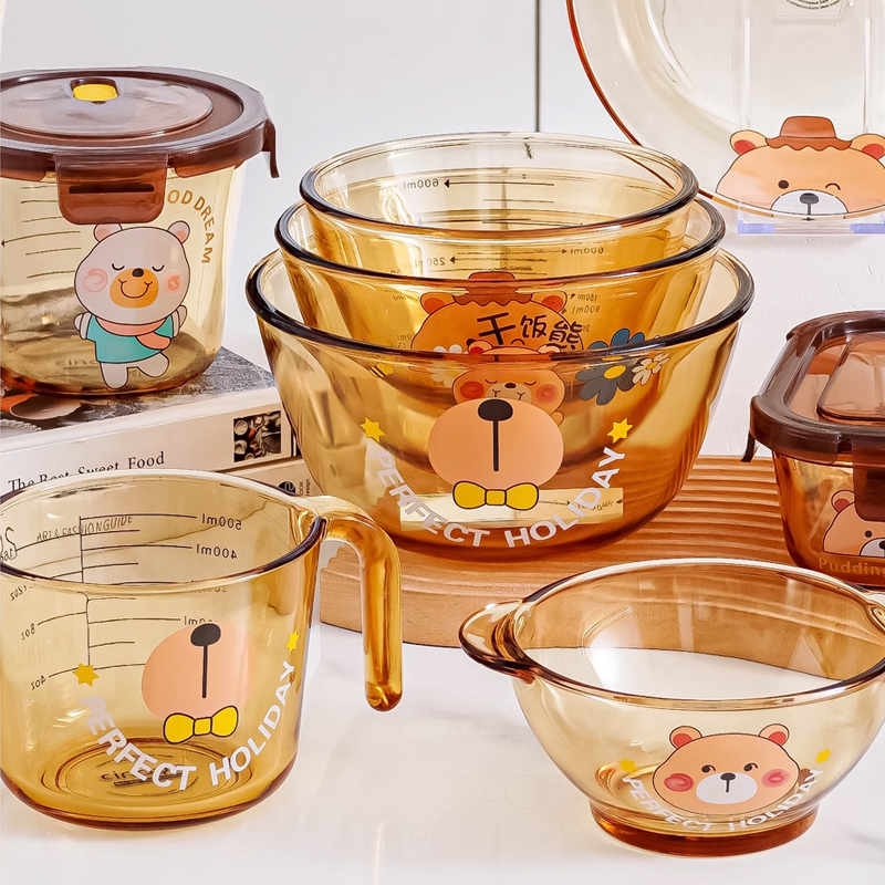 可爱卡通干饭熊玻璃碗耐高温玻璃