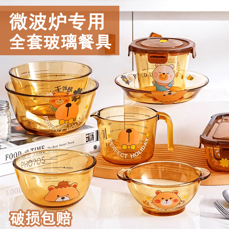 瓷纳雅干饭熊高硼硅玻璃碗饭盒耐高温家用微波炉家用吃饭碗沙拉碗