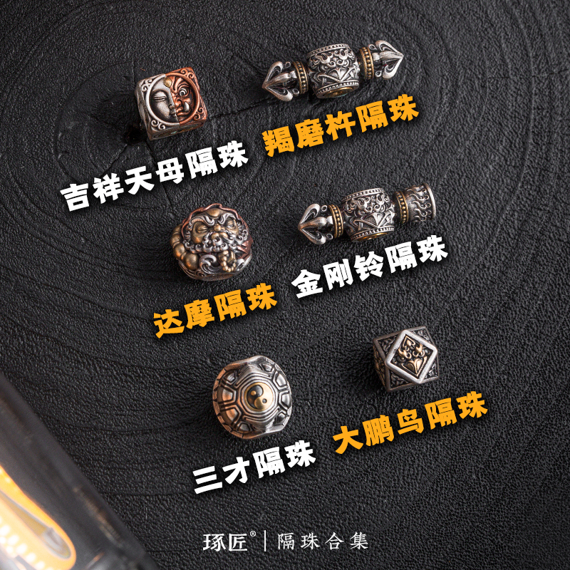 琢匠手串隔珠合集文玩配饰国风串珠配珠diy猴头星月银饰配件散珠