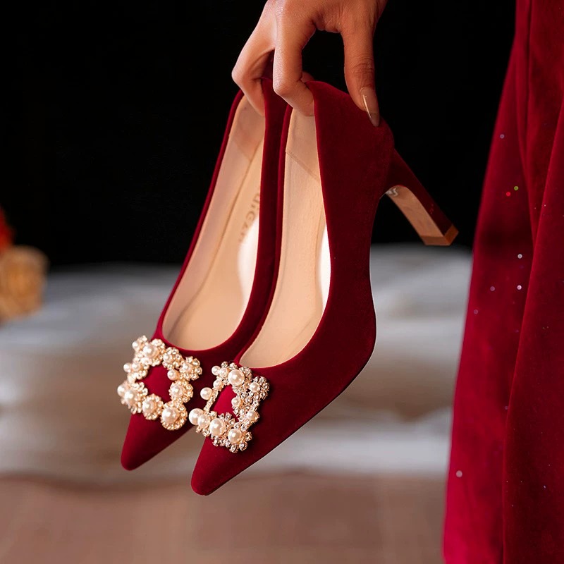 红色婚鞋女中式秀禾婚纱两穿新娘鞋绝美不累脚孕妇浅口高级感单鞋