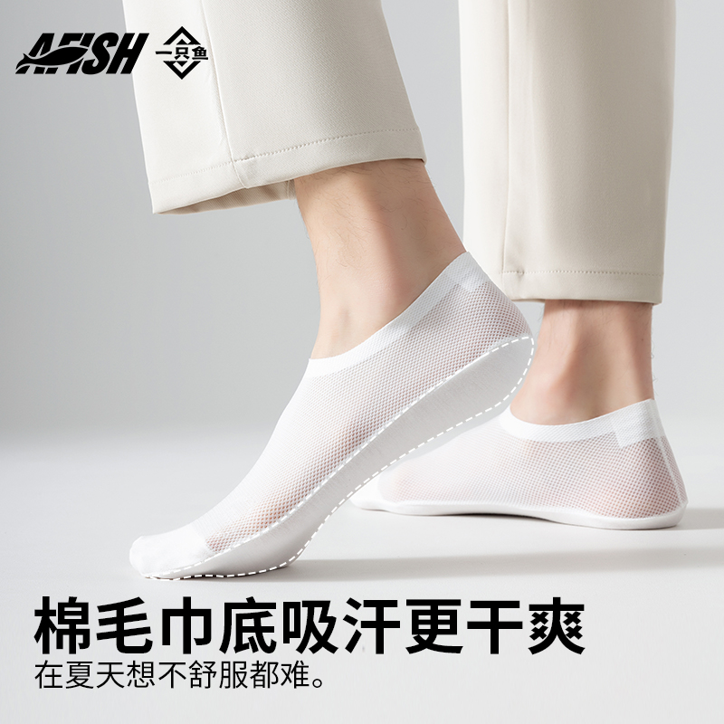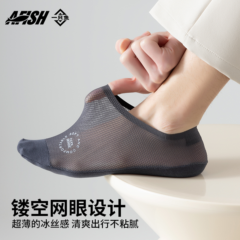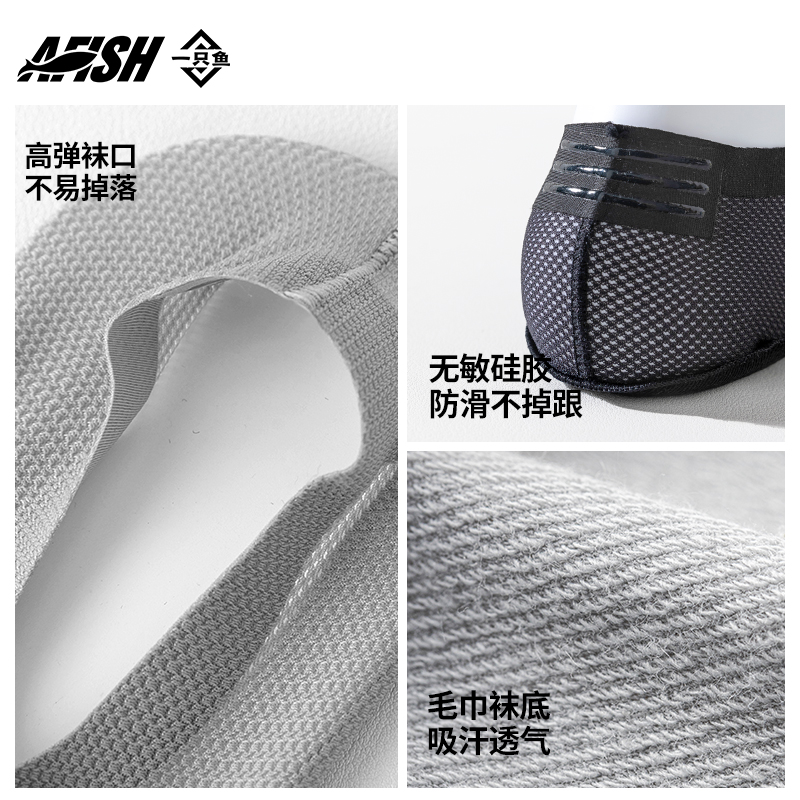 一只鱼男士隐形船袜夏季薄款网眼透气防滑不掉跟低帮浅口吸汗短袜