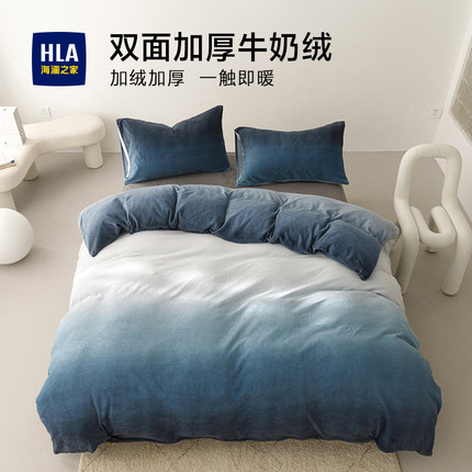 海澜之家牛奶绒床上四件套珊瑚绒冬季双面加绒床单被套法兰绒床品