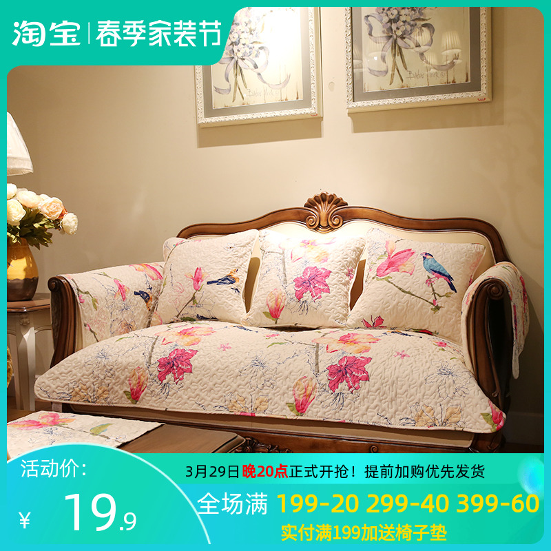 美式田园暖色全棉四季水洗沙发垫