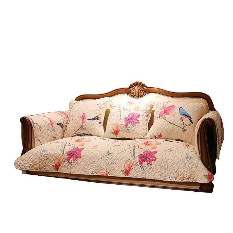 暖色美式温馨田园全棉防滑沙发垫布艺花鸟沙发巾纯棉四季沙发罩套