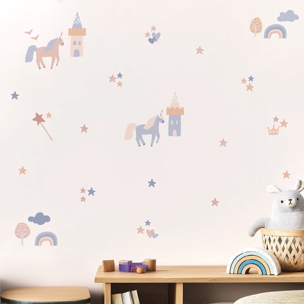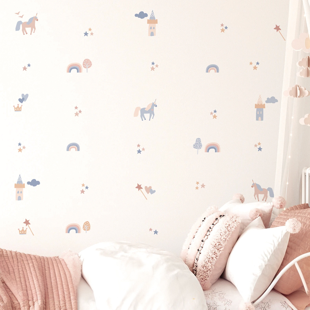不透明布纹独角兽儿童房温馨墙贴