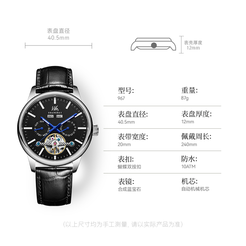上海手表男多功能镂空飞轮自动机械表防水透底国产腕表送生日礼物