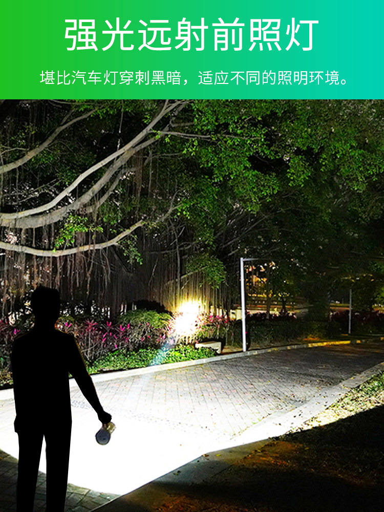 康铭强光手电筒太阳能充电远射超亮探照灯应急家用手提户外露营灯