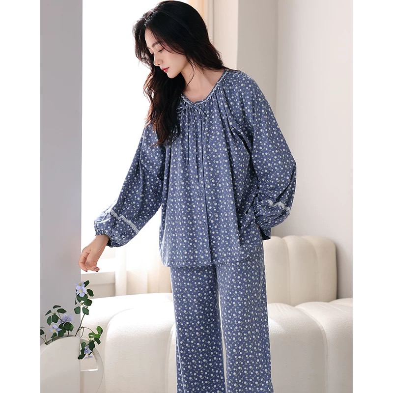 长袖长裤纯棉女士春秋款睡衣高级感韩版家居服可外穿100%全棉套装