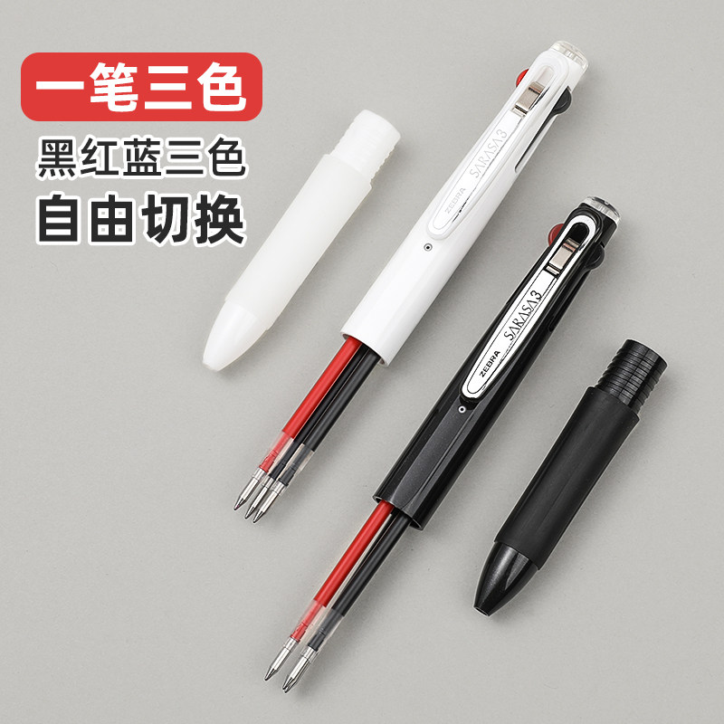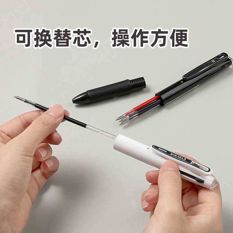 日本ZEBRA斑马多色中性笔J3J2 多功能三色按动式水笔0.5模块笔笔杆带细闪模块笔三合一JK笔芯