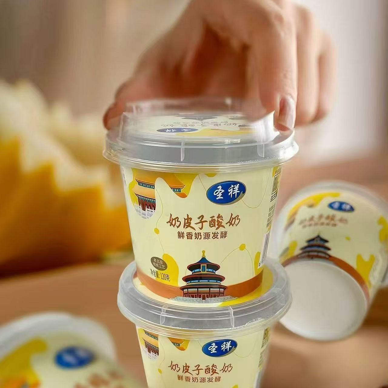 北京直发圣祥奶皮子酸奶120g/杯装老北京风味益生菌发酵酸奶