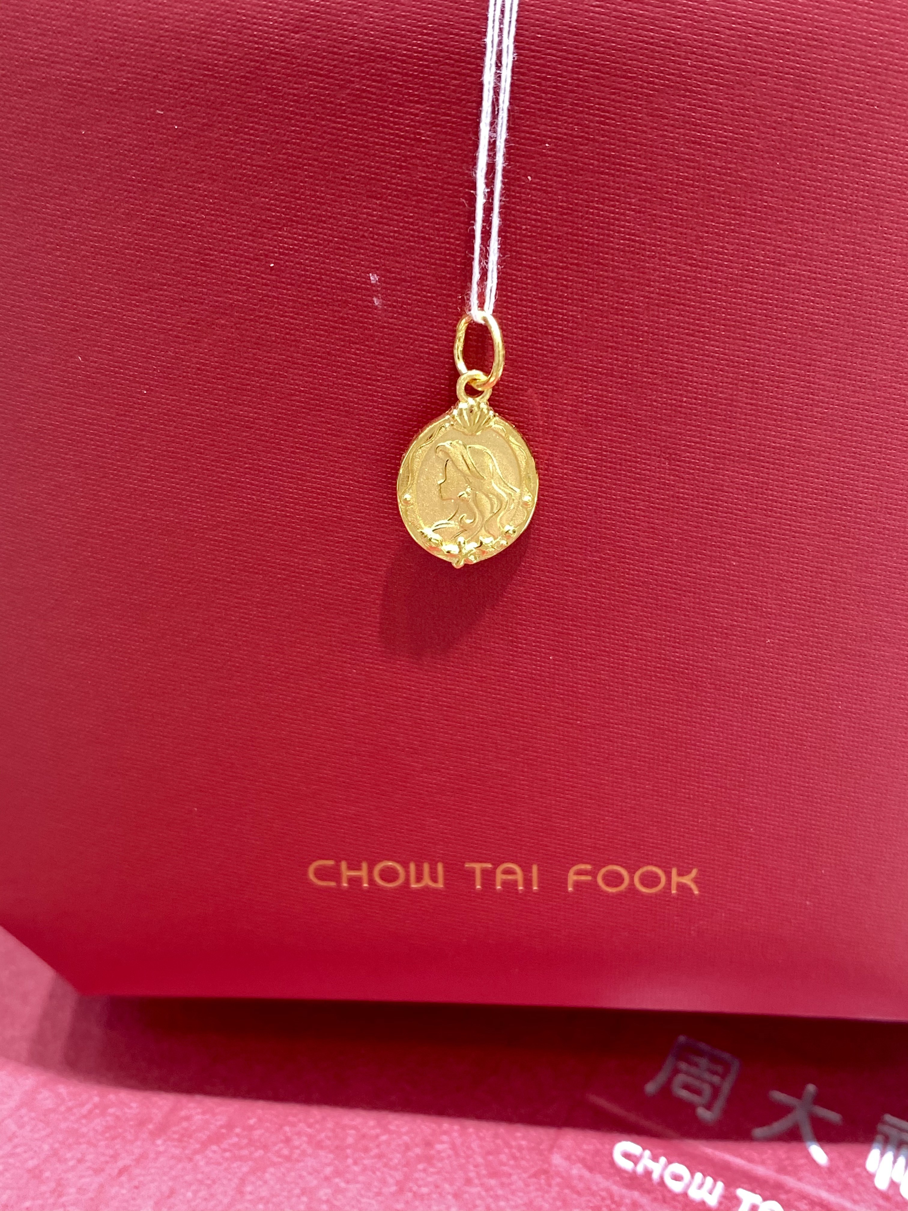 周大福代购 迪士尼公主美人鱼白雪公主贝儿足金黄金吊坠 定价七折