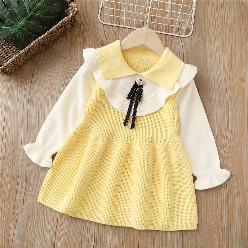 女童秋装毛衣裙子2025新款女宝宝翻领针织连衣裙春秋季儿童公主裙
