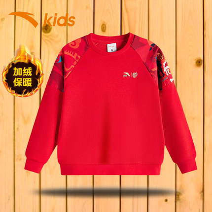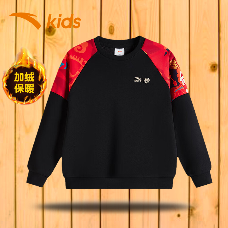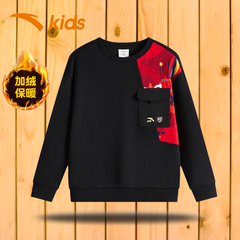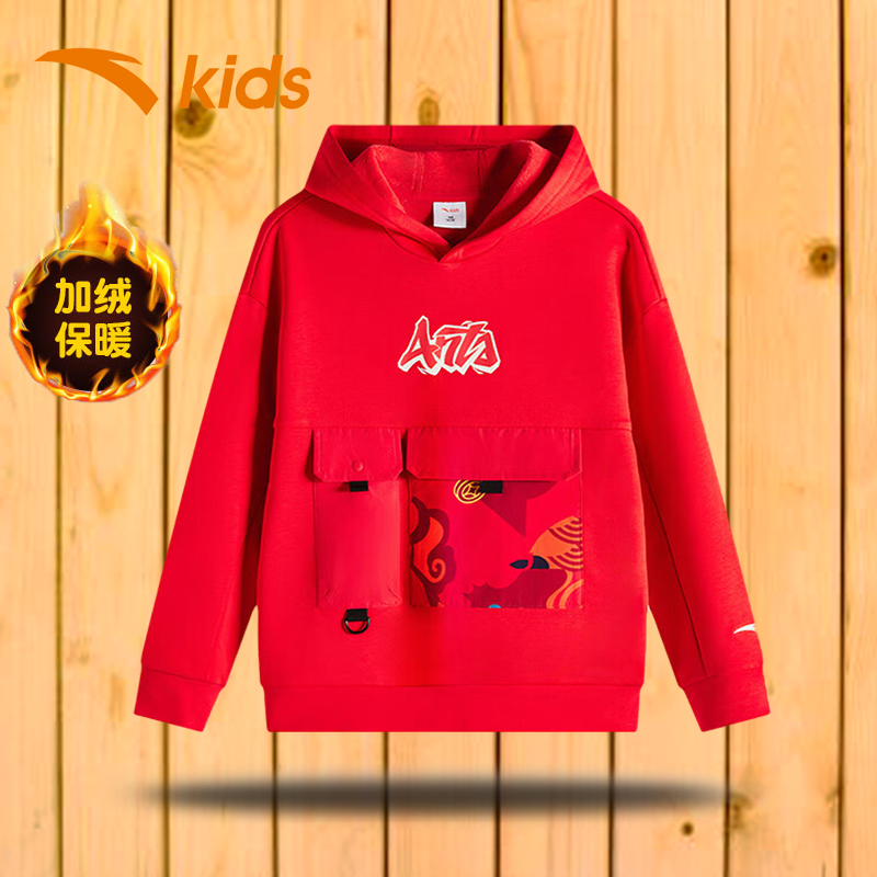 安踏童装男童加绒套头卫衣春秋儿童运动连帽上衣大童保暖冬装男孩