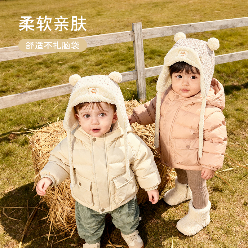 宝宝帽子毛绒帽男女童秋冬款儿童套头帽百搭护耳雷锋帽