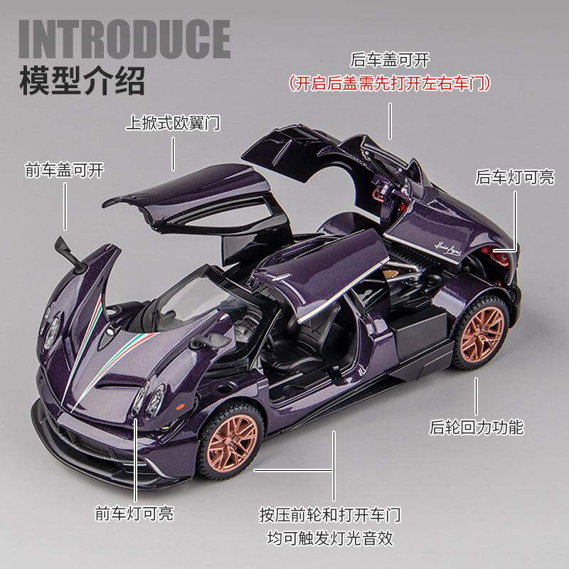 1:32合金帕加尼中国龙跑车轿车越野车车模带声光炫酷玩具儿童摆件