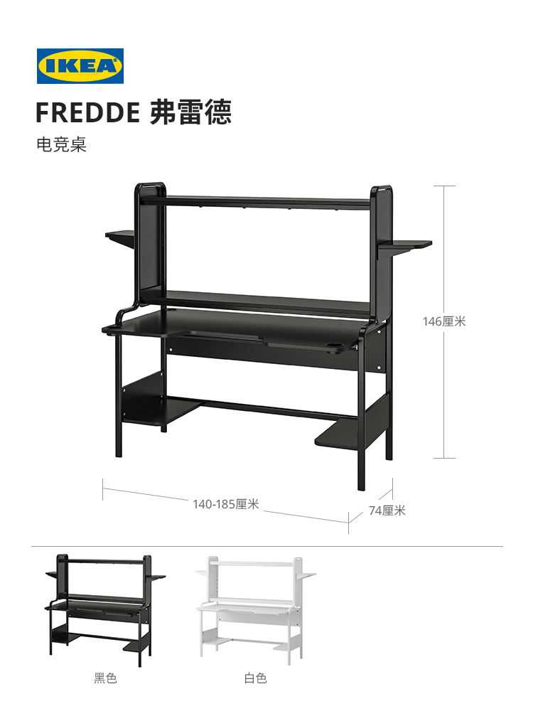 IKEA宜家FREDDE弗雷德书桌双电脑电竞游戏电脑桌电竞桌书房办公桌