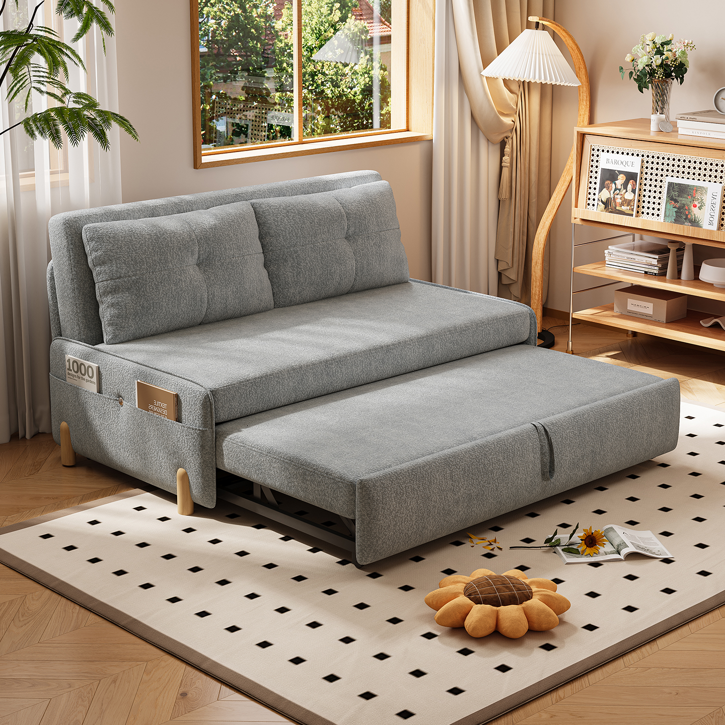 现代简约雪尼尔绒伸缩式高架沙发床多功能可折叠客厅卧室一体两用