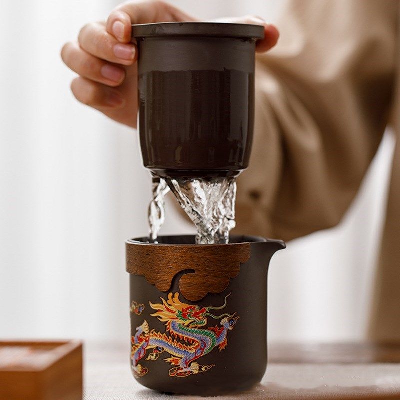 龙凤呈祥变色紫砂壶原矿紫泥带茶滤茶杯大容量便携泡茶壶旅行茶具