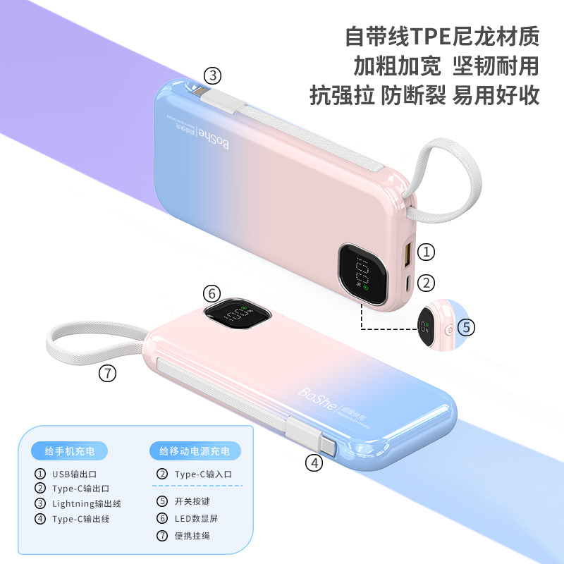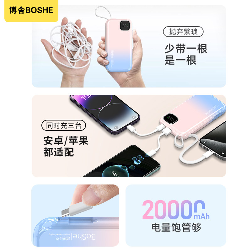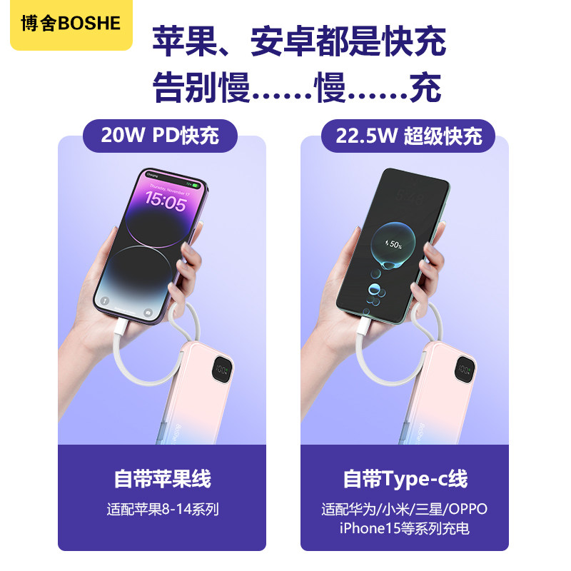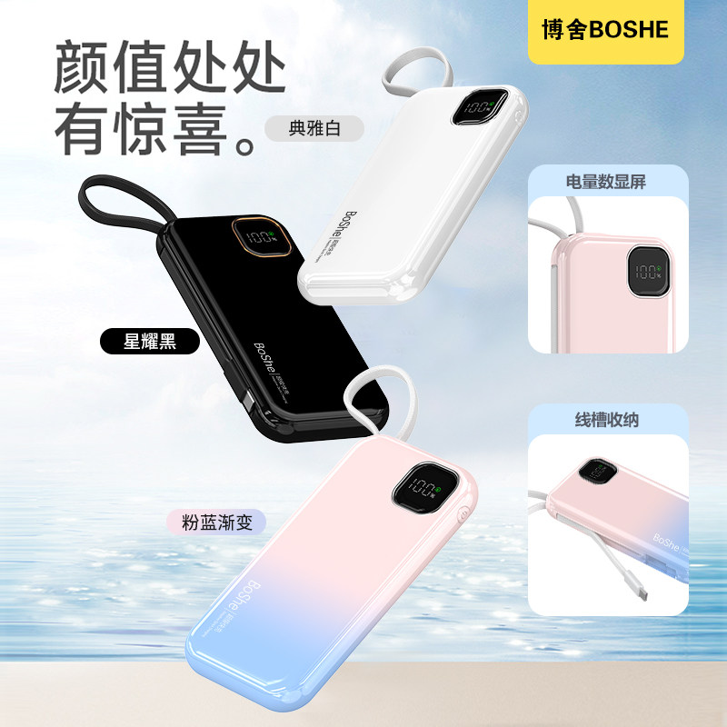 【3C认证】博舍•大容量快充充电宝自带线充电宝小巧便携苹果安卓