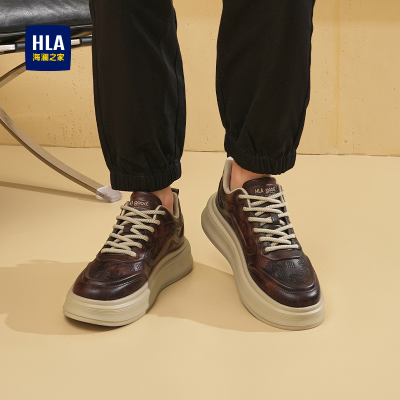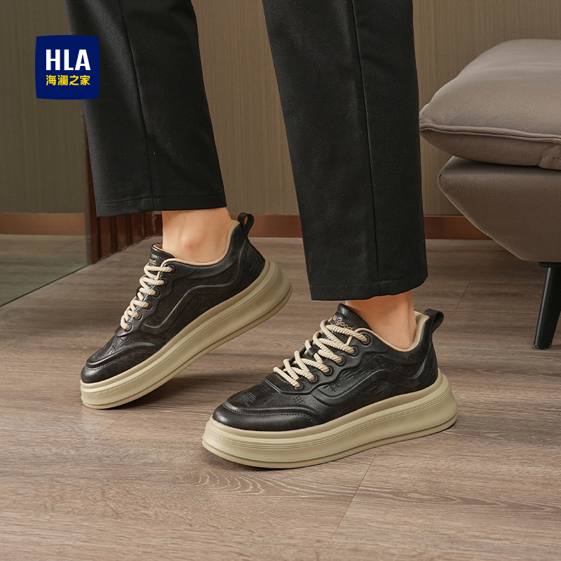 海澜之家男鞋2025新款冬季皮面复古休闲板鞋增高软底运动百搭潮鞋