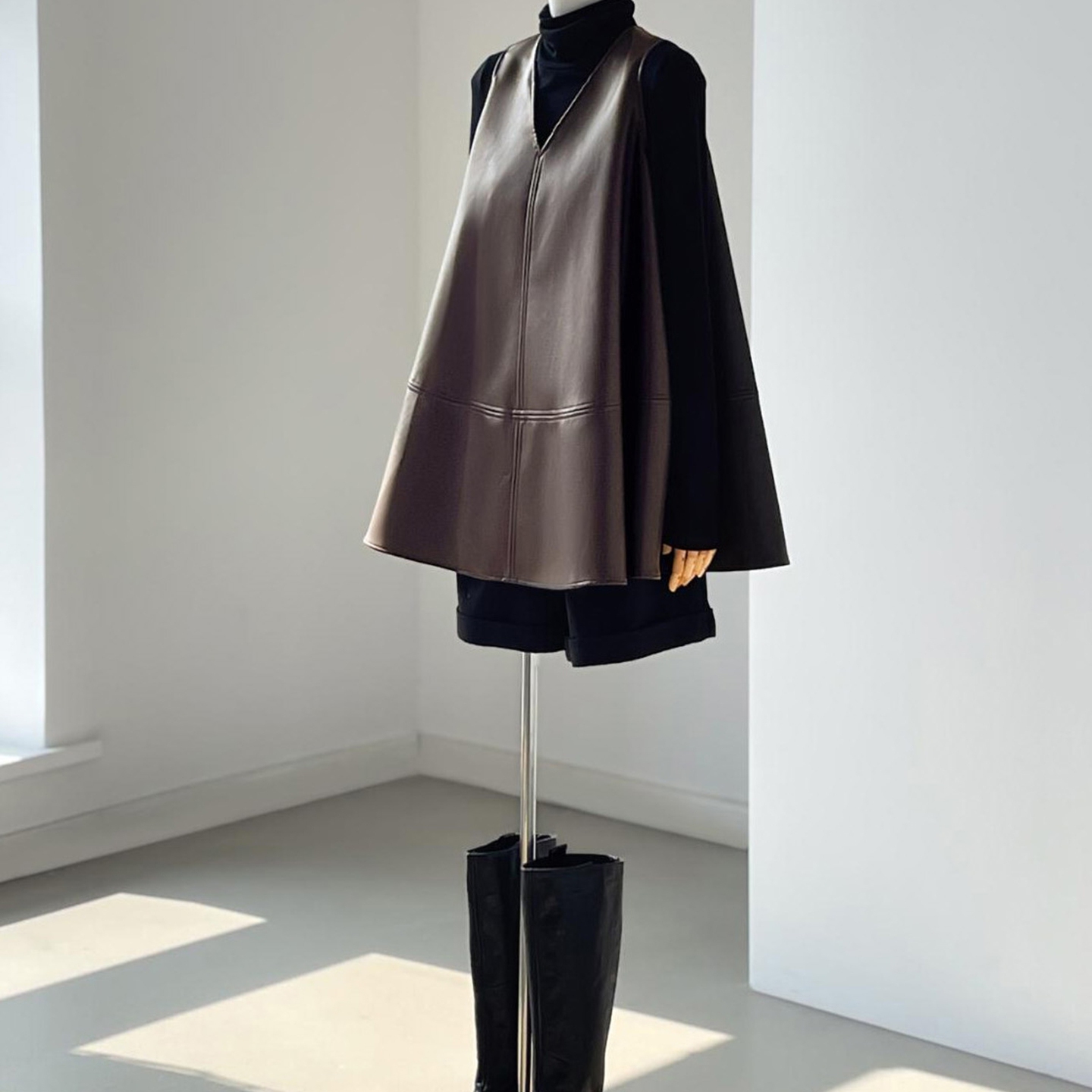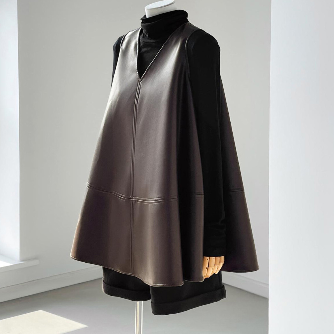 外贸撤回复古老钱风 优雅气质时髦 皮斗篷女2025新款叠穿背心裙子