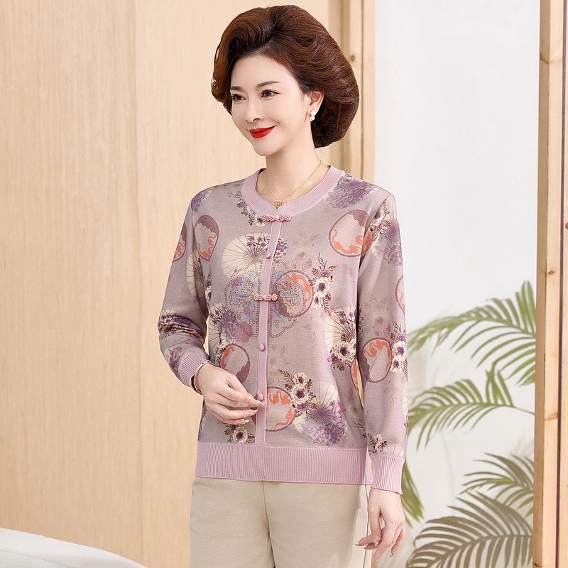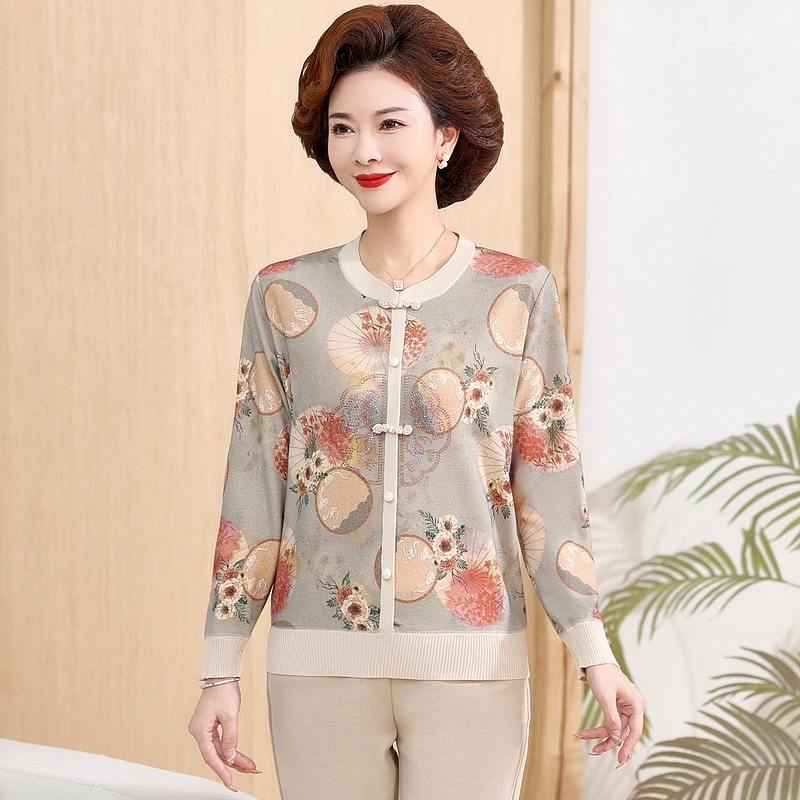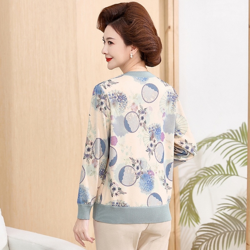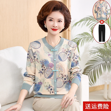 洋气妈妈秋装新款纯棉T恤上衣中老年女春秋时尚国风外穿打底小衫