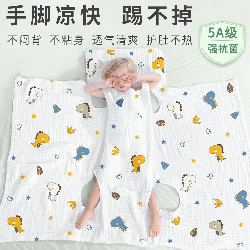 中大儿童防踢被子神器四季薄被宝宝空调盖毯午睡背心睡袋纱布分腿