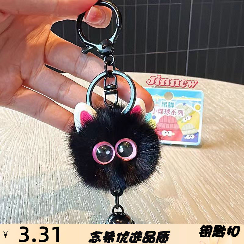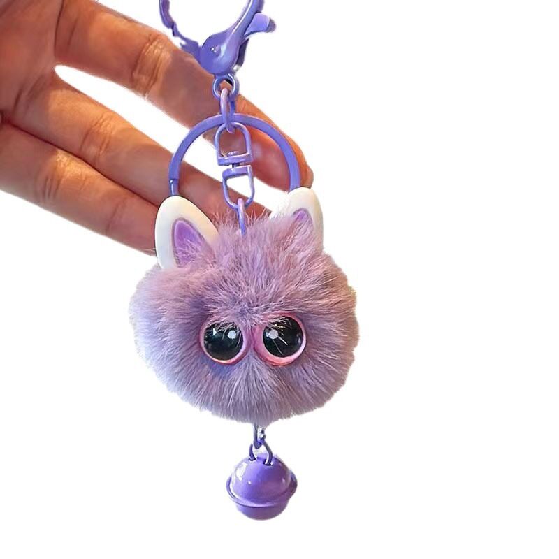 仿水貂毛喵喵团子铃铛卡通钥匙扣