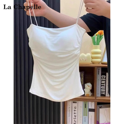 拉夏贝尔白色纯欲风小吊带背心女内搭修身美背文胸一体带胸垫上衣