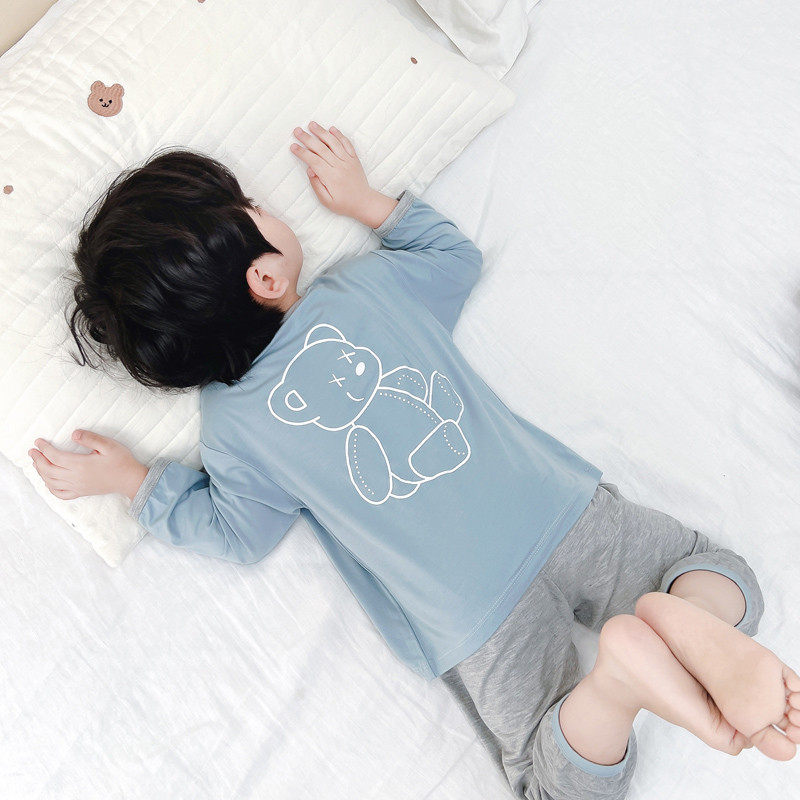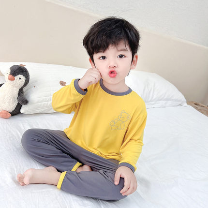 儿童睡衣男莫代尔薄款春秋男孩长袖空调服家居服宝宝冰丝男童套装