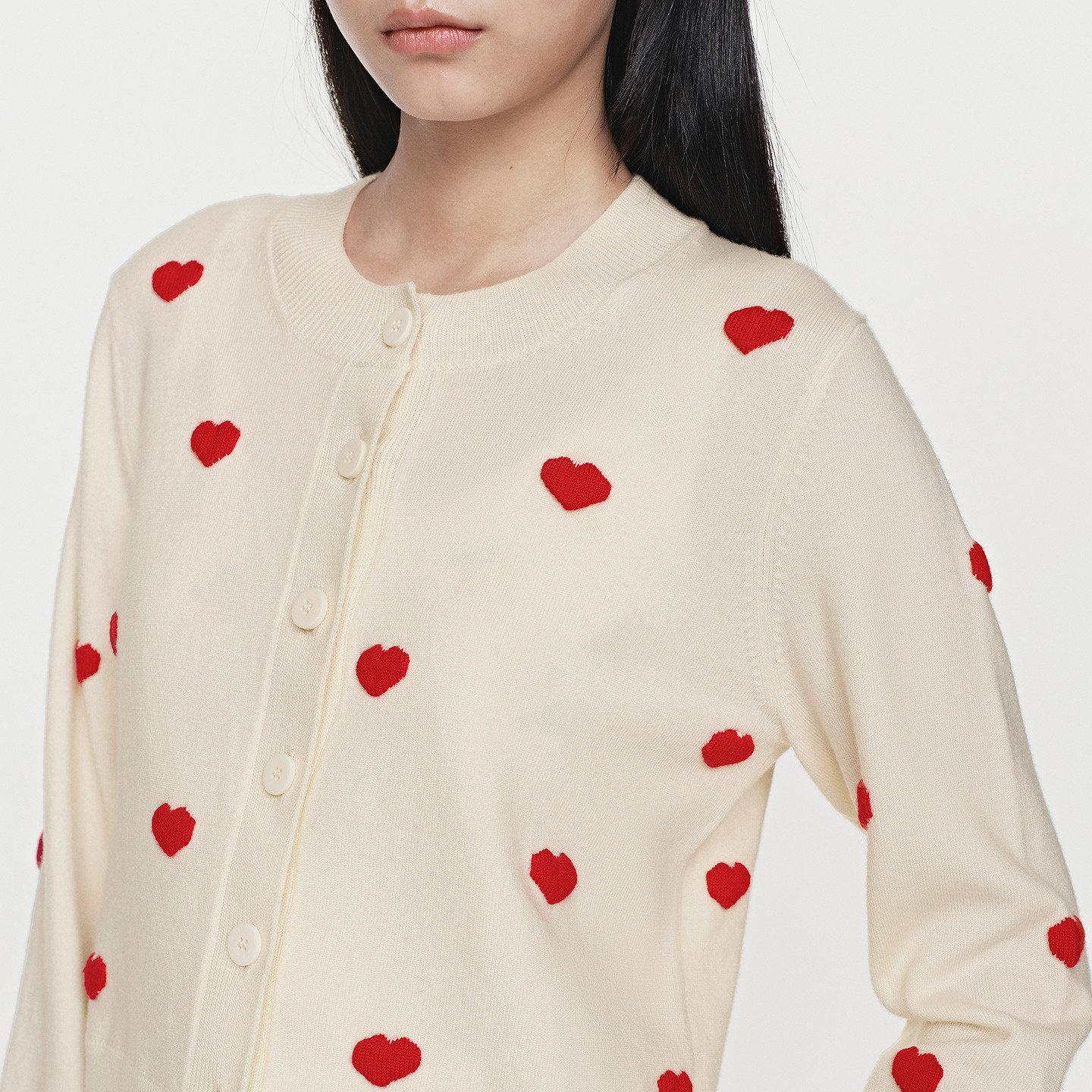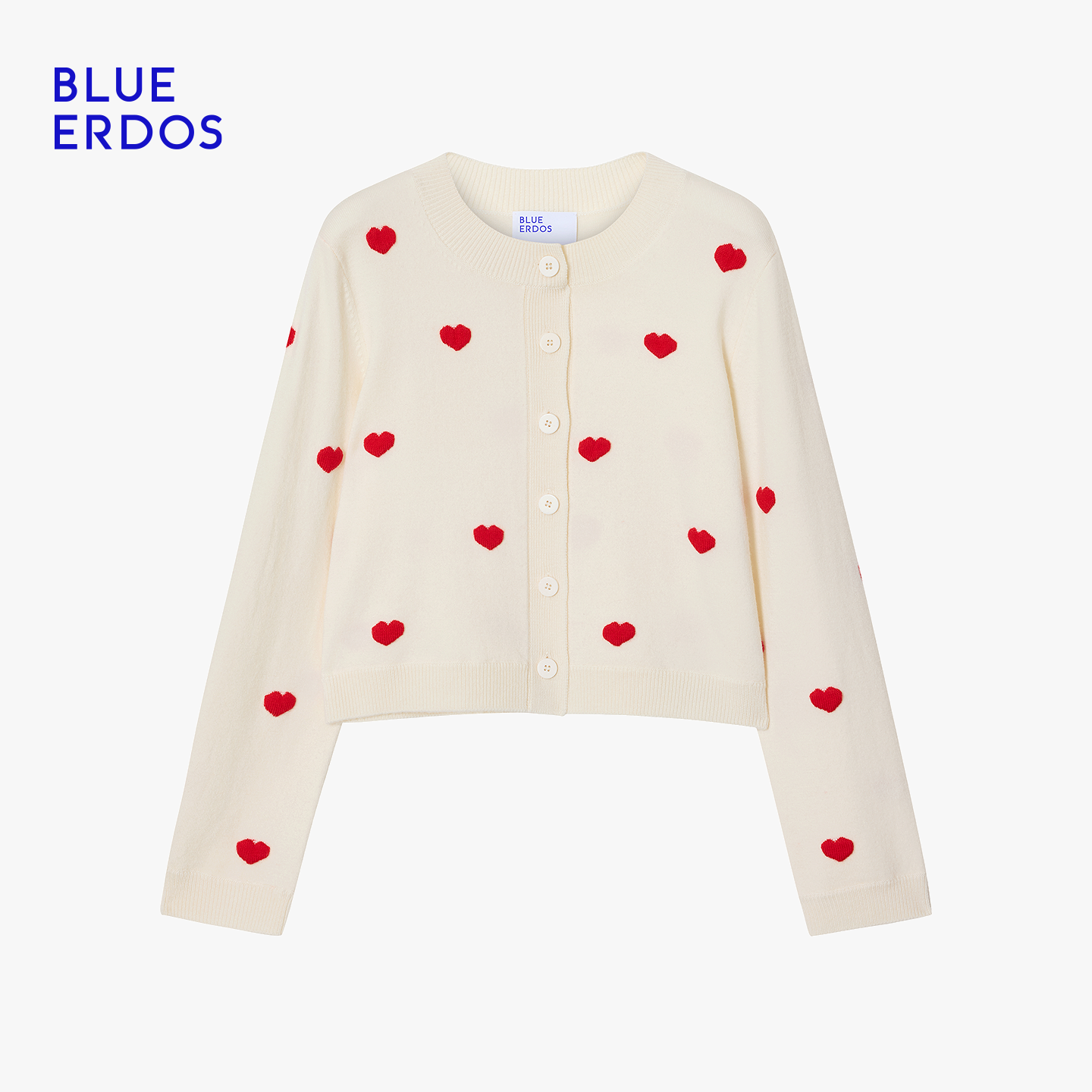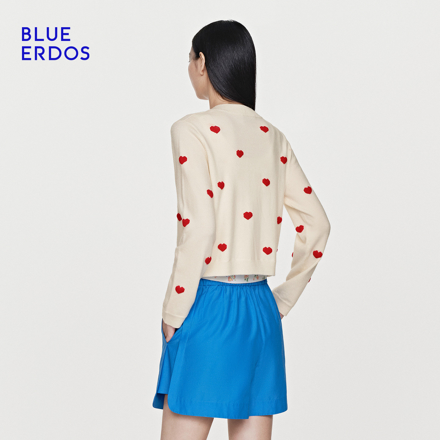 【心愿针织】BLUE ERDOS26早春新品100%绵羊毛圆领提花针织开衫女