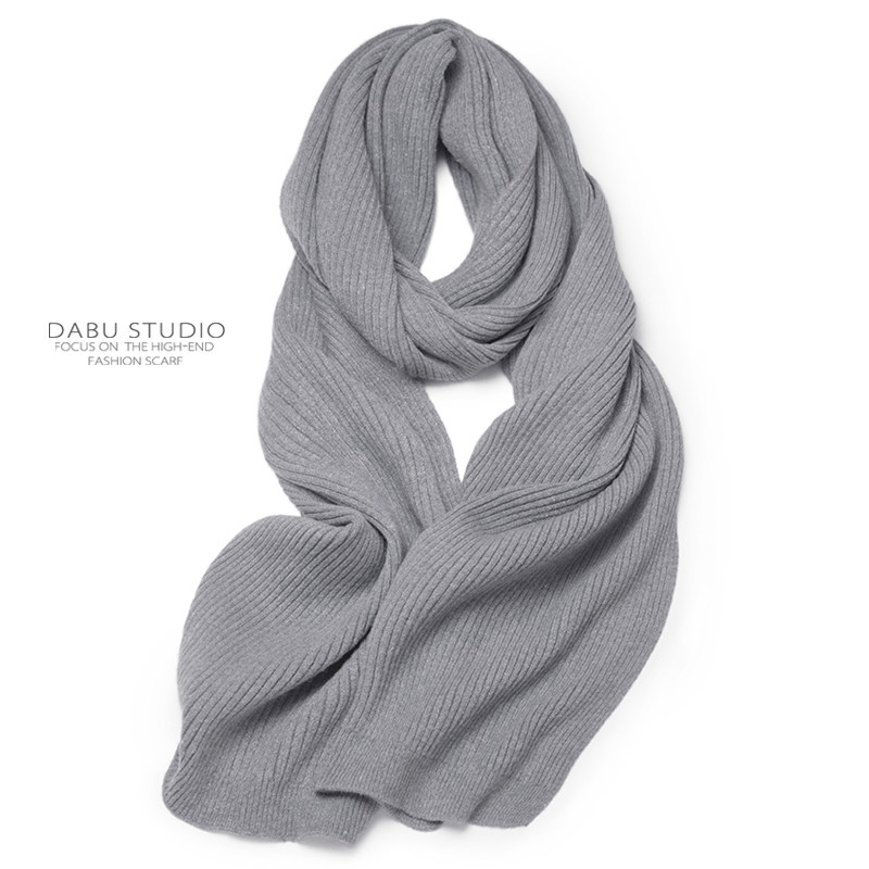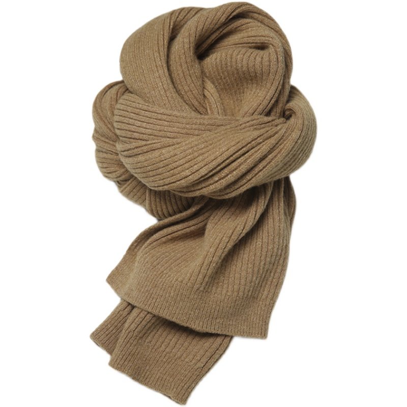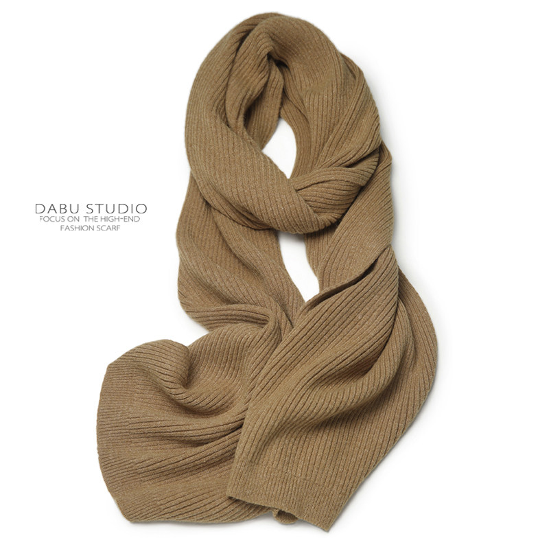 简约经典日系坑条驼色浅灰纯色男女百搭冬季毛线针织仿羊绒围巾