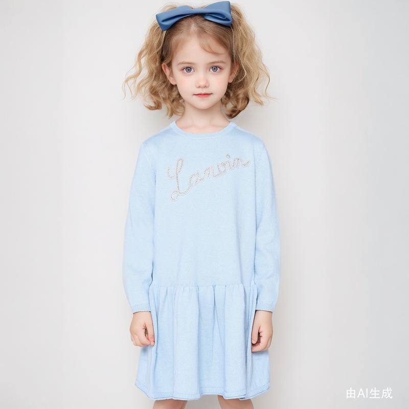 【折扣】Lanvin 冬季女童棉质羊毛混纺连衣裙