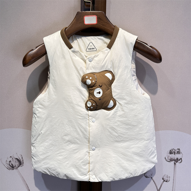 儿童冬季保暖羽绒服85白鸭绒可爱保暖短款卡通纯色无袖马夹34-3-1